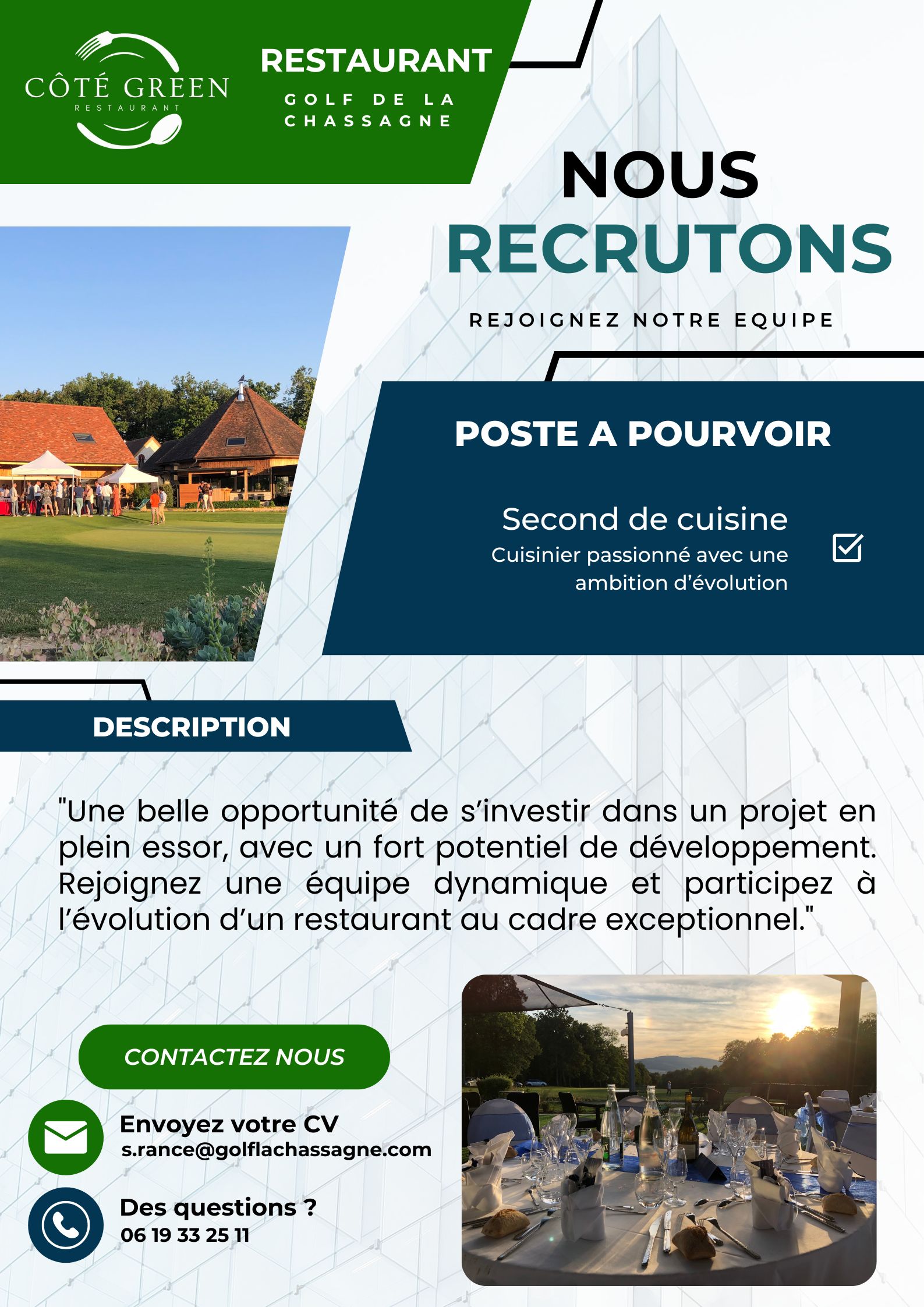 #Recrutement #Cuisinier #ChefdeCuisine #GolfLaChassagne #OpportunitéProfessionnelle